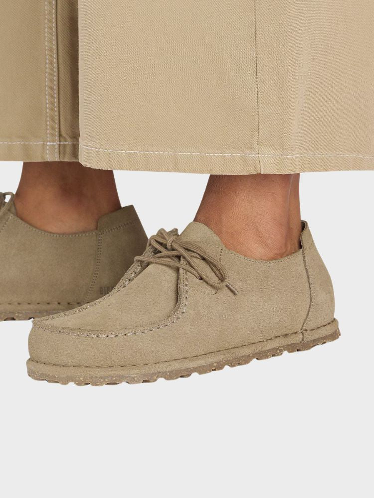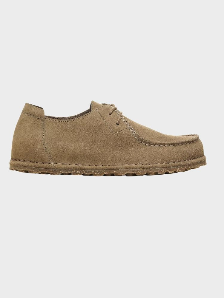 Birkenstock Utti Lace ruskindssko er en komfortabel og stilfuld sandal, der kombinerer Birkenstocks klassiske ergonomiske design med moderne detaljer. Den bløde læderoverdel med snøredetaljer giver et elegant udtryk, mens den anatomi-inspirerede kork- og gummisål sikrer god støtte og komfort gennem hele dagen — ideel til både ferie, hverdag og rejser.
