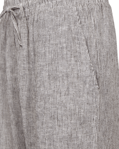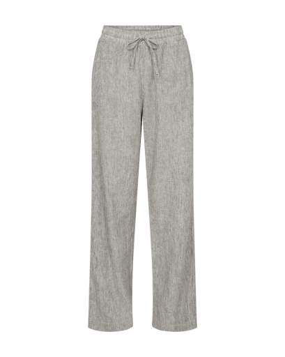 Pants from Freequent in a light linen material with a striped print. The pants have a simple silhouette with an elasticated waistband with tie-strings, a high waist, side pockets and a straight fit.