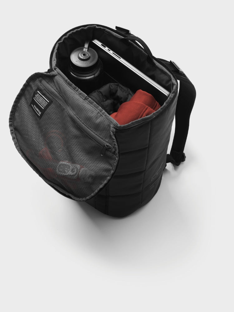 It therefore opens with a zipper on the top, where you will also find a large mesh pocket. The hook-up system is also on this bag from Db Journey, making it compatible with other of their multifunctional bags.