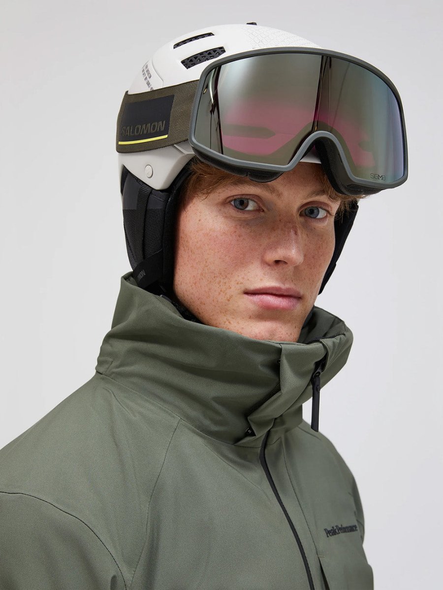 NOTE: The model in the pictures has a different color than selected, but shows the fit and technical details of the ski jacket.