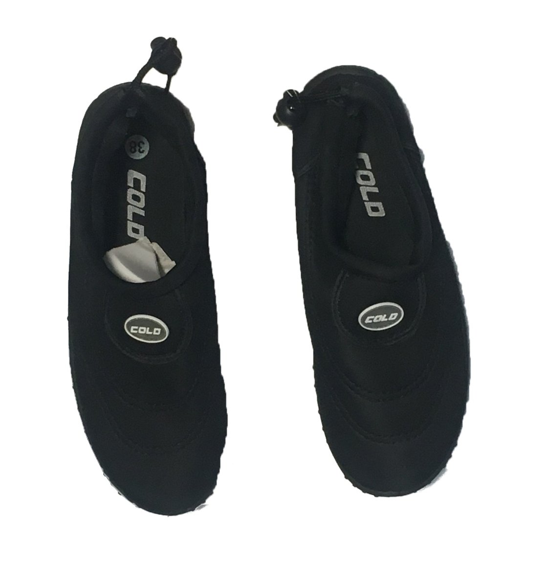 Black swim shoes for children. These wet shoes are made of neoprene so they can be used for bathing, swimming and other water sports. They are comfortable and flexible. This version has a sole.