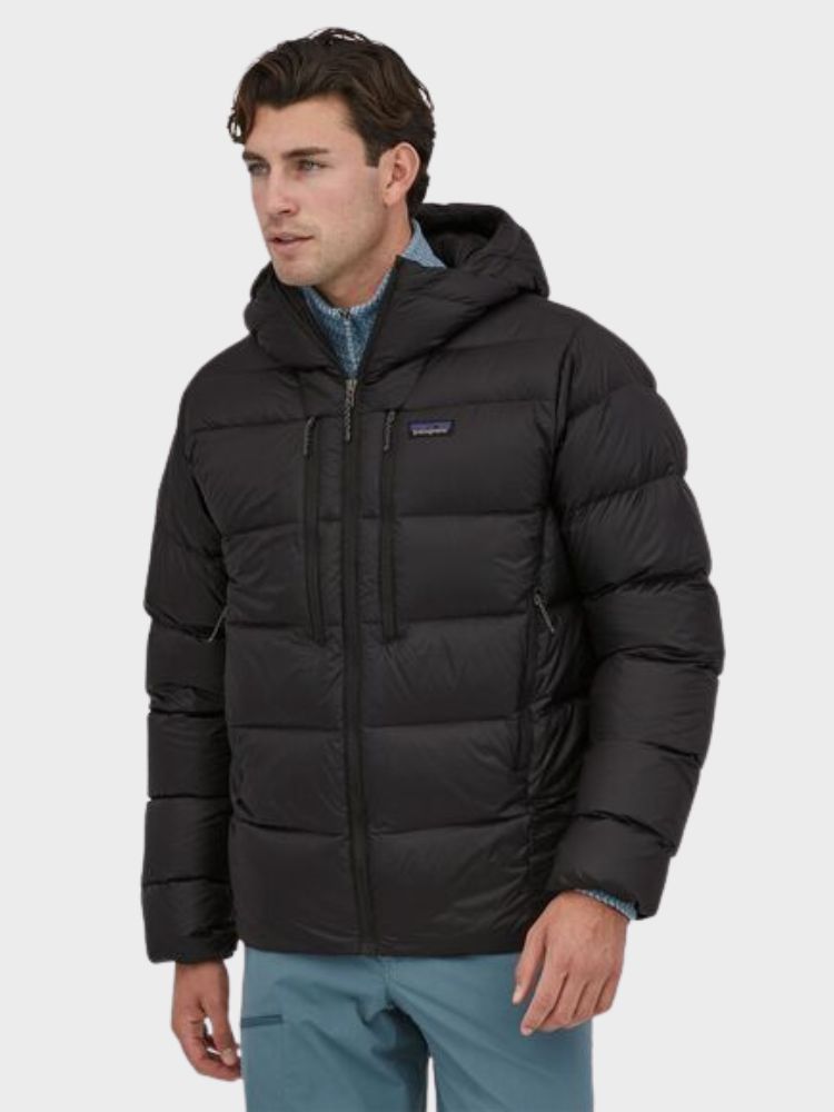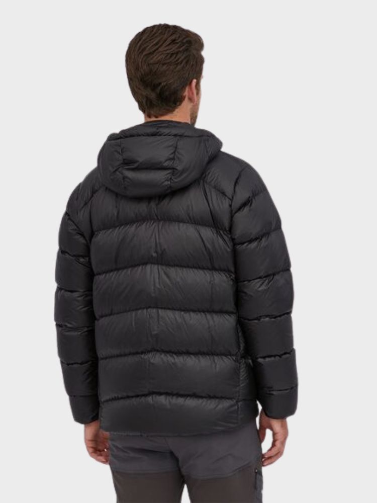 Designed for maximum warmth and minimal weight, the Patagonia Men's Fitz Roy Down Jacket is perfect for cold weather conditions and demanding outdoor activities. The jacket combines 800-fill-power down with a lightweight, recycled nylon-pertex shell to deliver excellent insulation and packability. With a roomy fit, adjustable helmet-compatible hood and handy pockets, it's both functional and versatile. Ideal for everything from alpine adventures to everyday wear on cold days. Please note that only image 1 shows the correct color.