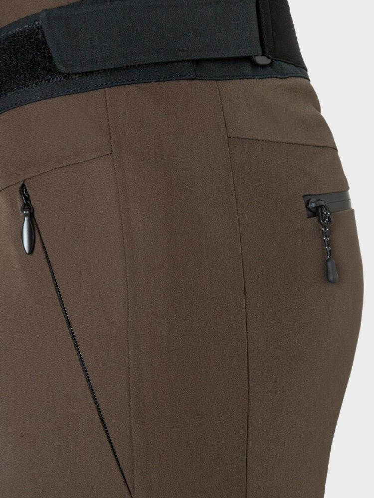 Borja are technical ski pants designed for women who demand both freedom of movement and high functionality in the snow. The pants are made of a two-layer 4-way stretch material with a wind and water repellent finish and fully taped seams for maximum protection. They offer a water column pressure of 10,000 mm and a breathability of 15,000 g/m²/24h, making them ready for demanding conditions on the slopes. The waist has an elasticated and high lumbar segment with an adjustable waistband and Velcro closure, while the leg ends have a zipper and an internal snow guard with reinforced edges - all combined in a slim, sporty cut with discreet Fire + Ice details.