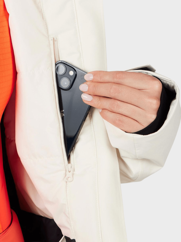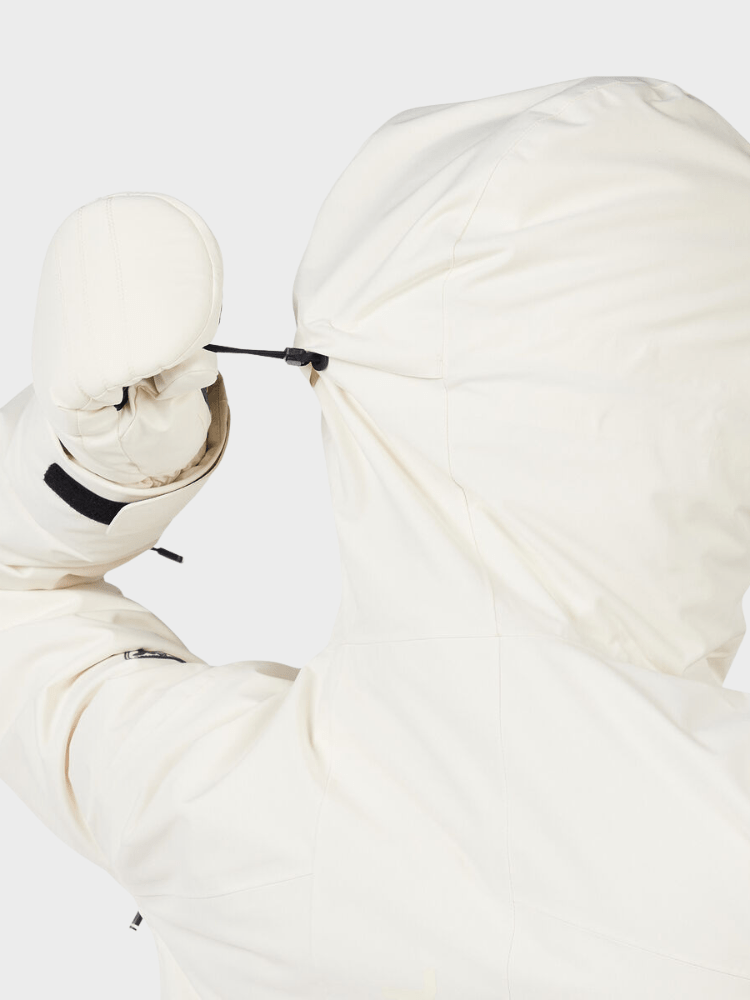 Features: Fixed hood, integrated snow skirt, stretch cuffs with thumbholes, YKK water-repellent zippers and zippered ventilation openings.