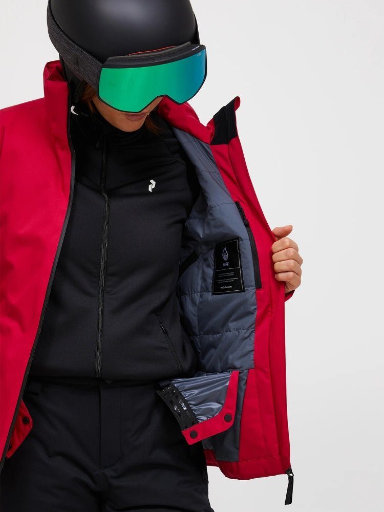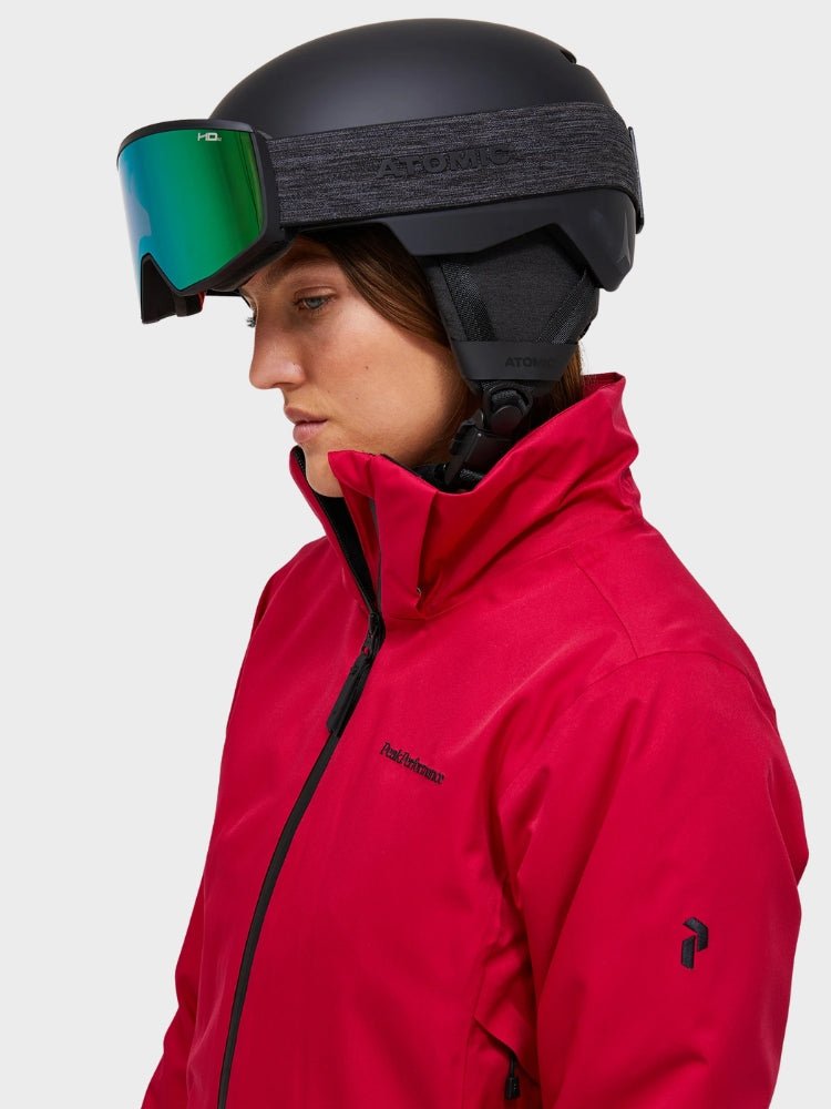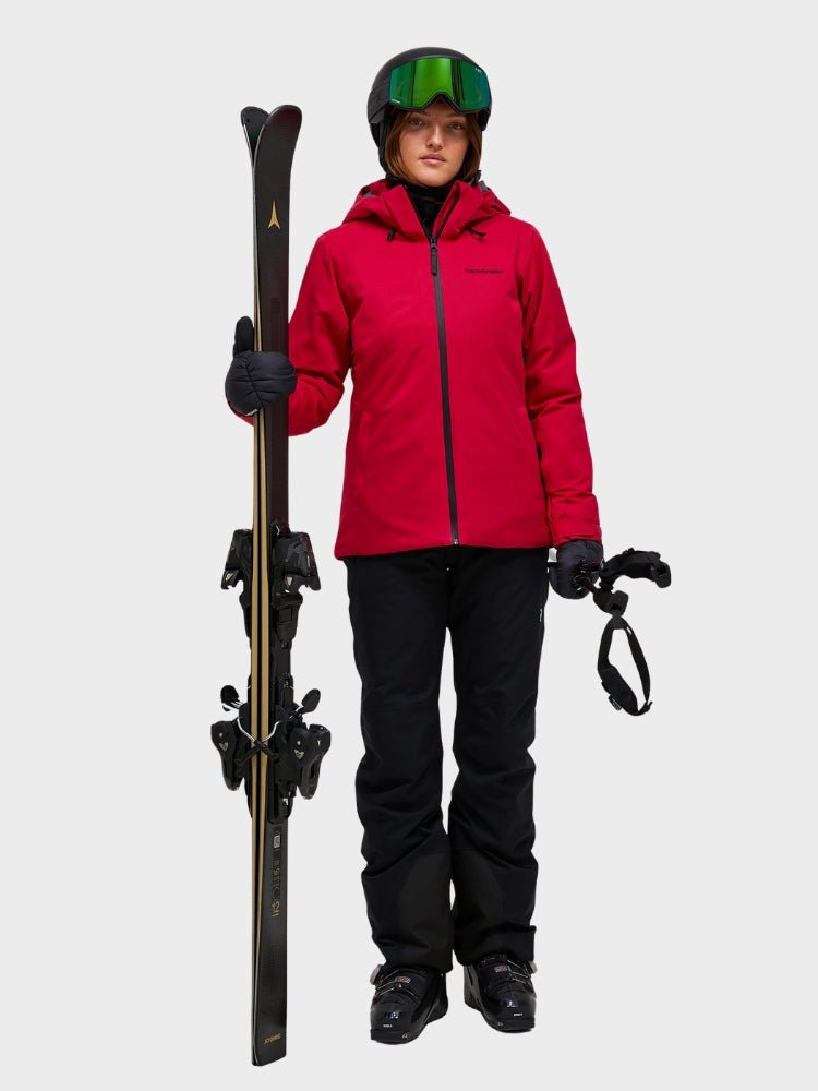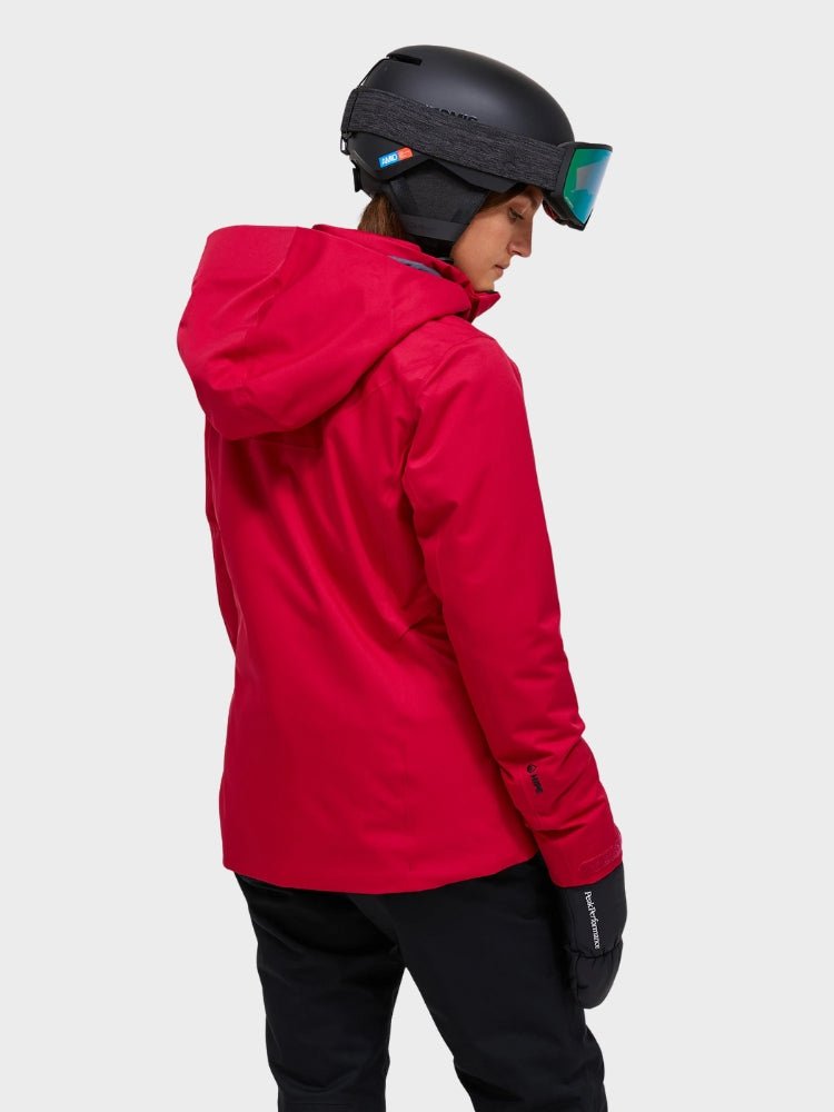Classic, highly technical and stylish ski jacket for women from Peak Performance. The jacket is filled with warm padding, is designed with a snow guard, a removable hood with space for your ski helmet and several inside and outside pockets for, among other things, your lift pass on the sleeve. A timeless ski jacket of high quality from Peak Performance.