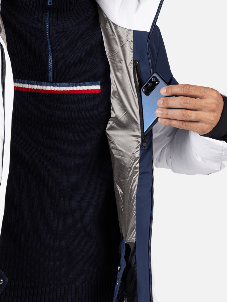 Ski-specific features: Snow guard, thumbholes and lift pass pocket