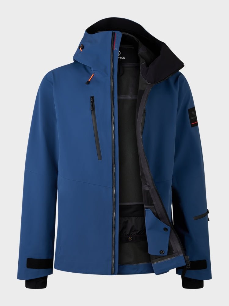 The fixed hood, taped seams and adjustable cuffs ensure high functionality in all weather conditions, while the elastic thumb cuffs, ventilation zippers and snow guard make the jacket ideal for long days on the mountain. The design is rounded off by clean lines and discreet Fire + Ice details that give a sporty and modern look.