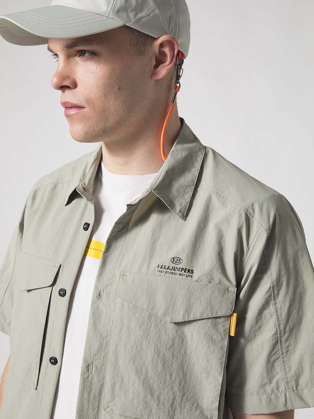 PETE is a summer wardrobe icon from the Italian brand Parajumpers. The shirt has a 'worker' design with its short sleeves, recycled nylon/cotton poplin material and large pockets on the front.