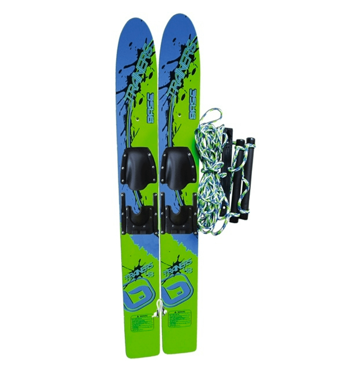 Here you have the perfect children's water ski. The noses of the ski are held together, and it has a tow line that can be mounted directly on the skis. This means that the child does not have to hold the entire tow themselves. A line with two handles is included.