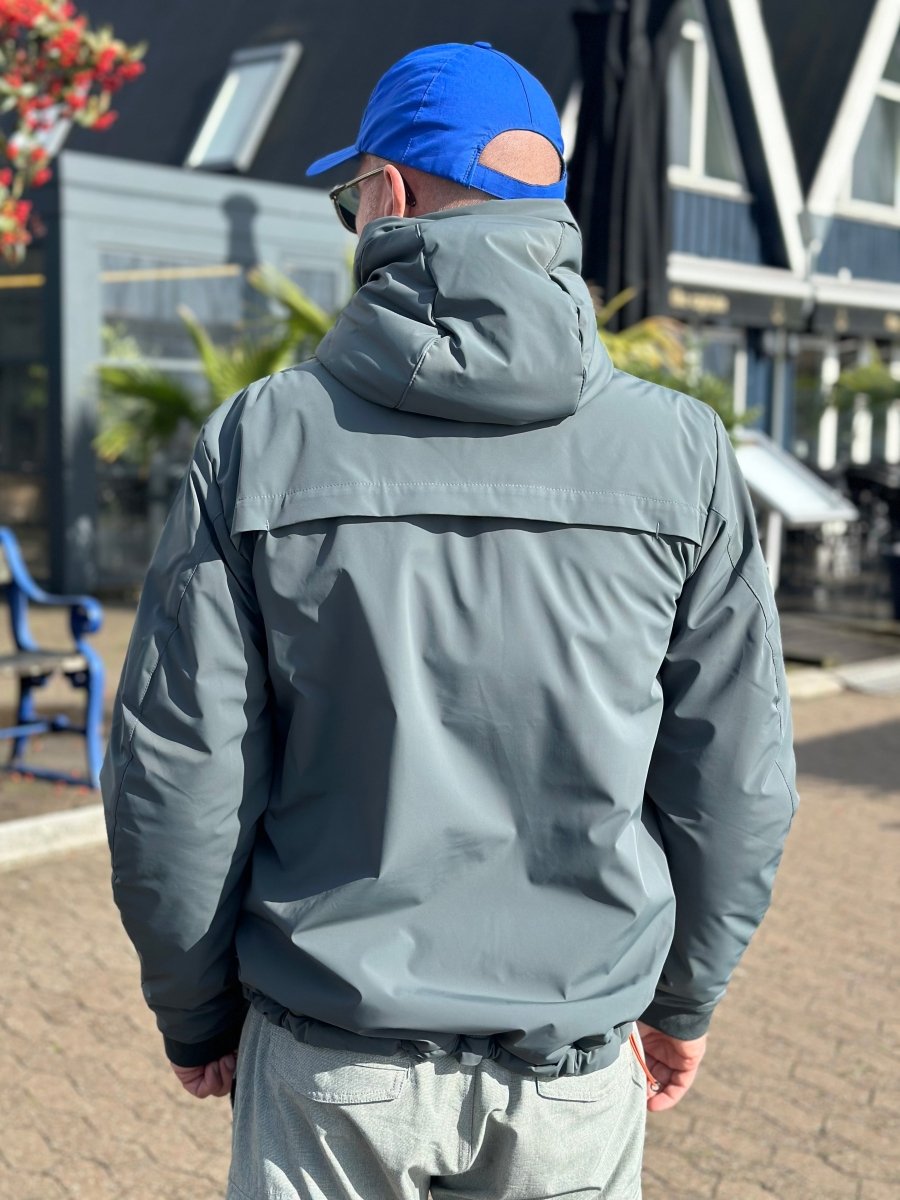 - Main fabric: Laminate three-layer stretch nylon-polyester poplin with water-repellent treatment