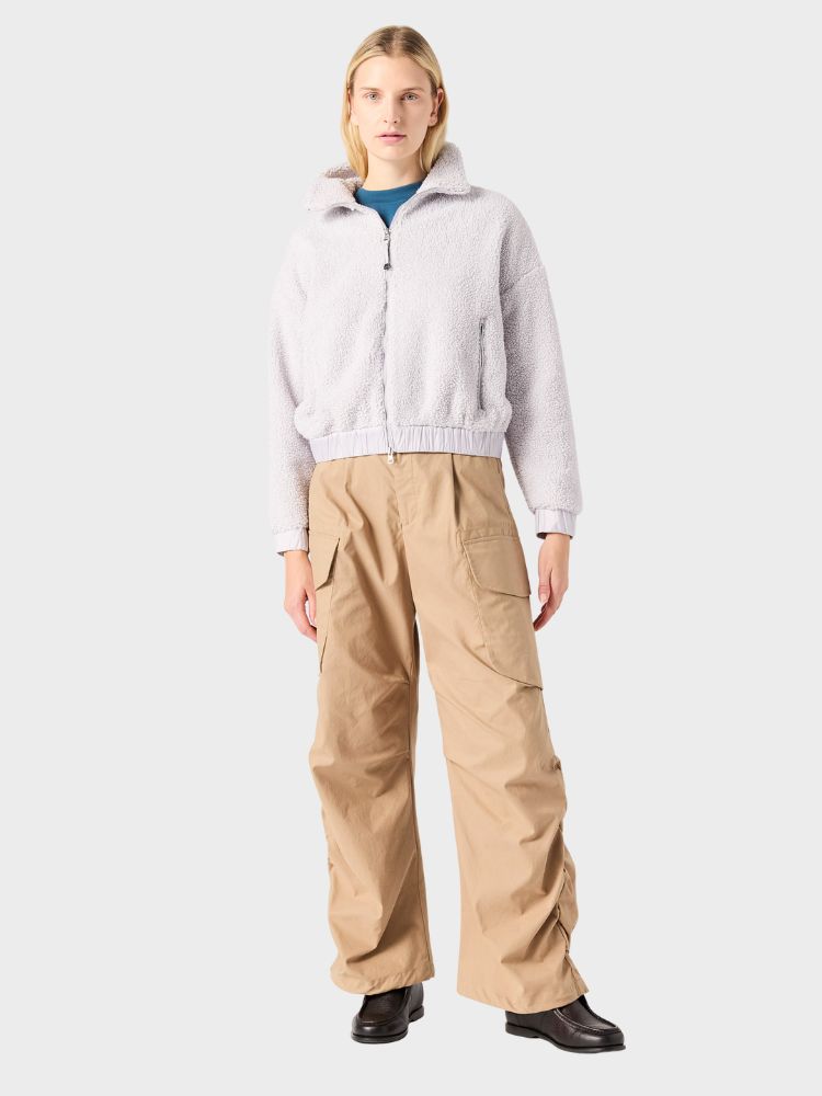 Sori is a relaxed and warm full-zip sweatshirt from the Power Fleece collection. It combines soft curly polyester fleece with semi-shiny nylon taffeta panels for a modern contrast and a refined finish. With its oversized fit, practical zippers and functional details, it is an obvious choice for both relaxation and layering in cooler weather.