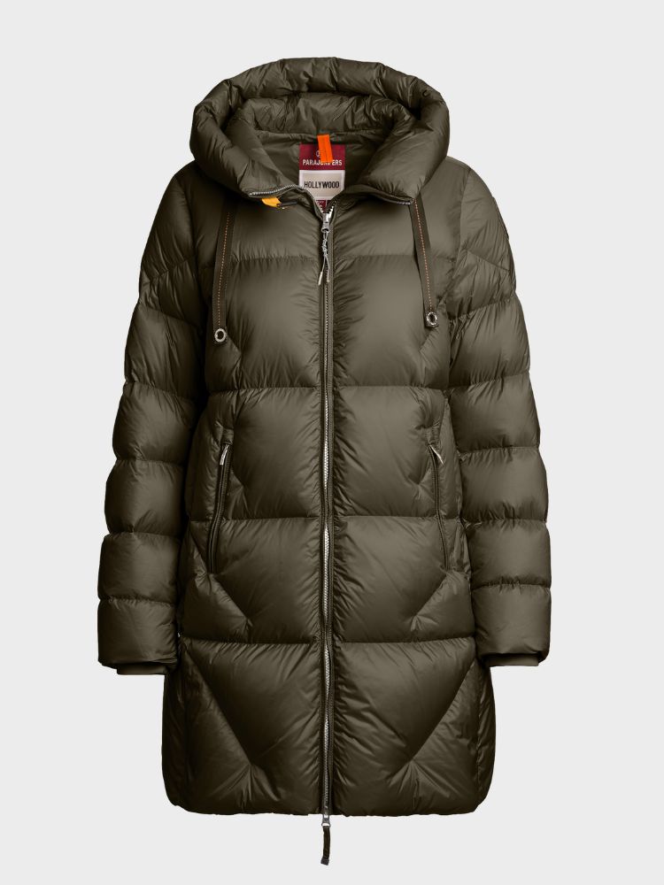 Janet is a long quilted down jacket from Parajumpers' Hollywood collection, designed with a contemporary fit and a distinctive aesthetic. The jacket is ideal for everyday wear in cooler climates thanks to its warm and lightweight down filling, wind and water-repellent nylon taffeta exterior and thoughtful details such as a hood with drawcord adjustment and zippers that optimize freedom of movement. The multi-linear design elegantly balances function, comfort and style.