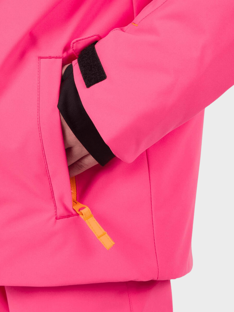 This jacket combines classic ski style with modern storm protection and low-profile insulation to keep kids warm, dry and focused on skiing.