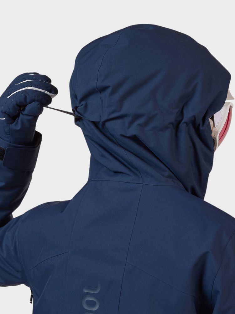 Features: Fixed hood, integrated snow skirt, stretch cuffs with thumbholes, YKK water-repellent zippers and zippered ventilation openings.