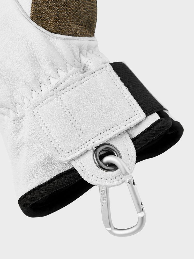 - Carabiner to hang the gloves on your pants, for example, when you're not wearing them.