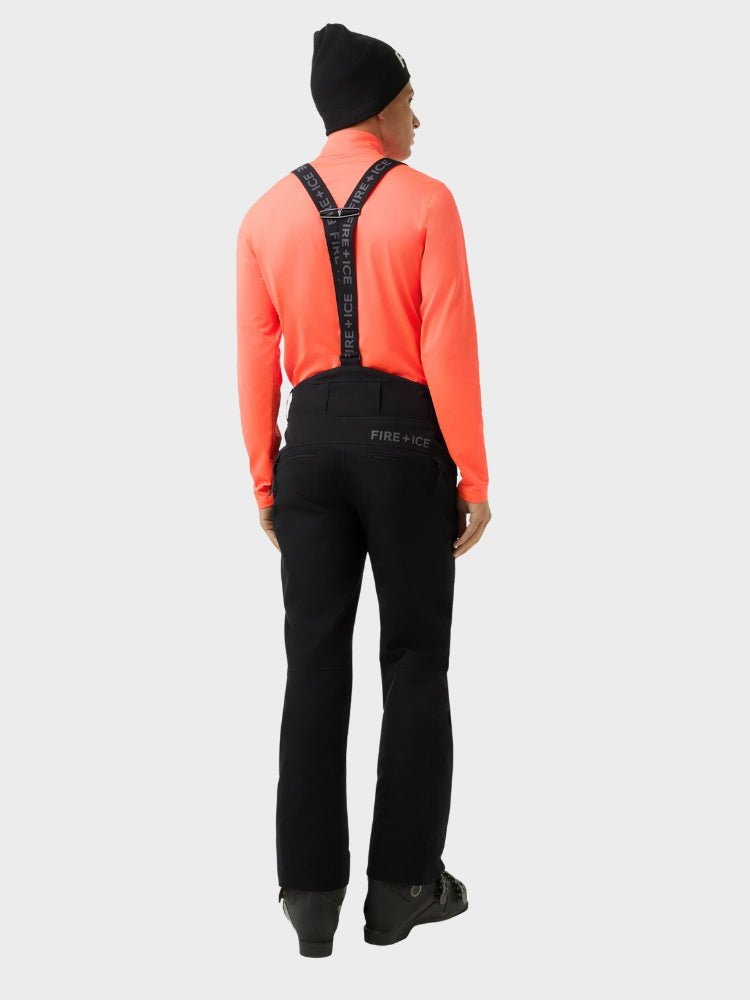 Scott is a pair of technical men's ski pants, designed for skiing where both freedom of movement and robustness are essential. The material is 4-way stretch with a water-repellent finish and fully taped seams, which provide effective protection against snow and moisture. The technical profile includes a water column pressure of 10,000 mm and a breathability of 15,000 g/m²/24h, making the pants ready for demanding conditions on the piste. Comfort is increased with adjustable braces in the Fire + Ice design, padded lumbar support and integrated snow guard at the leg end. With its sporty and precise fit and discreet branding, Scott is a strong choice for the active alpinist.
