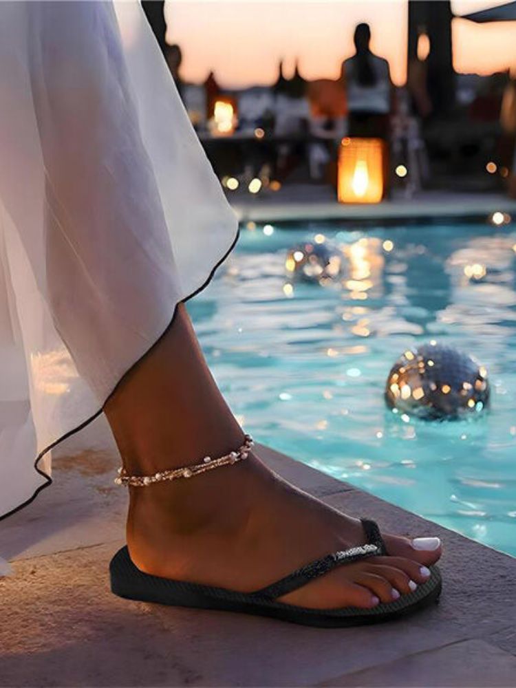 Havaianas Slim Glitter II klipklapper er en smart og feminin flip-flop med et slankt silhuet og glitrende stropper, der giver et elegant touch til sommerens looks. Perfekt til strand, byferie eller afslappet hverdag, hvor komfort og stil går hånd i hånd.